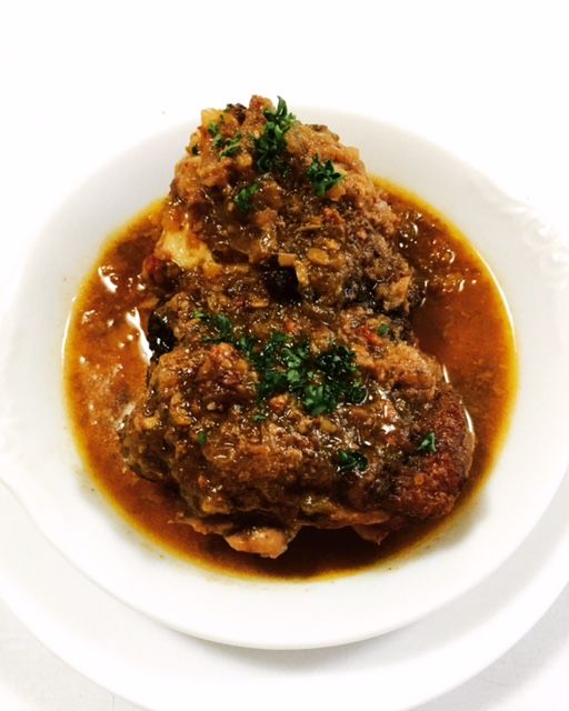 たっぷりの赤ワインで煮込みました。